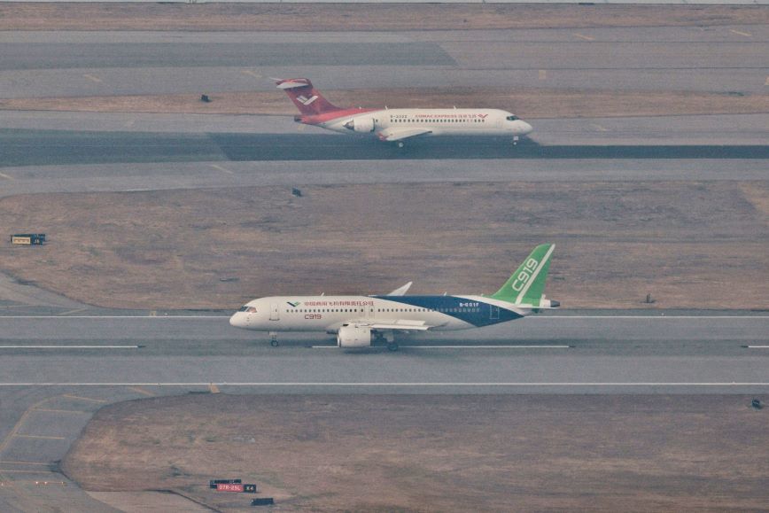 وتستعد شركة "كوماك" للطائرات التجارية الصينية، الشركة المصنعة للطائرة "سي919"، لمواجهة "إيرباص" و"بوينغ" في سوق الطائرات التجارية ذات الممر الواحد